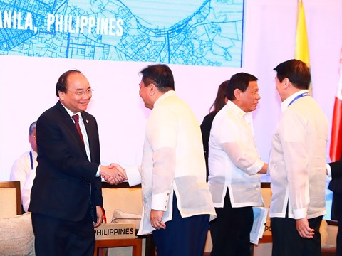 | Le Premier ministre vietnamien Nguyên Xuân Phuc (gauche) lors d'une rencontre avec des représentants de l’AIPA, le 29 avril à Manille. |