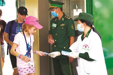 | L’équipe médicale de la garde-frontière de Hô Chi Minh-Ville distribue gratuitement des masques de protection aux croisiéristes américains au port de Bên Nghé. |