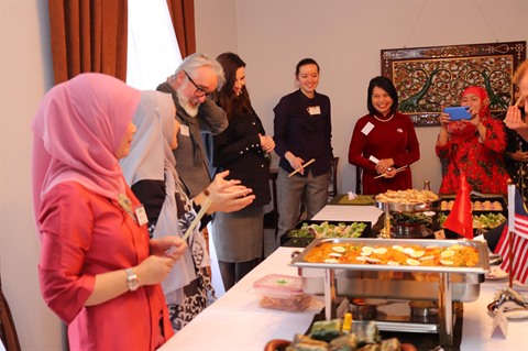 Le programme de trois heures a présenté aux participants le plat malaisien Yee Sang, la recette du "nem" (rouleau de printemps) du Vietnam, des danses traditionnelles indonésiennes.