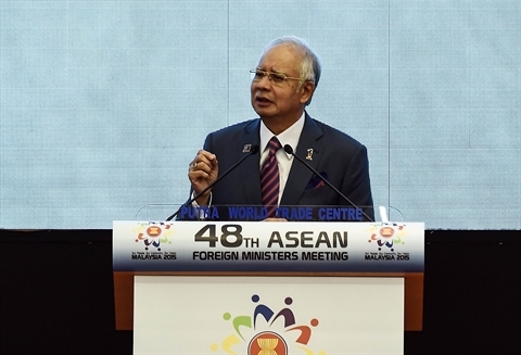| Le Premier ministre malaisien Najib Razak à la cérémonie d'ouverture de la 48e conférence des ministres des AE de l’ASEAN, le 3 août 2015 à Kuala Lumpur. |