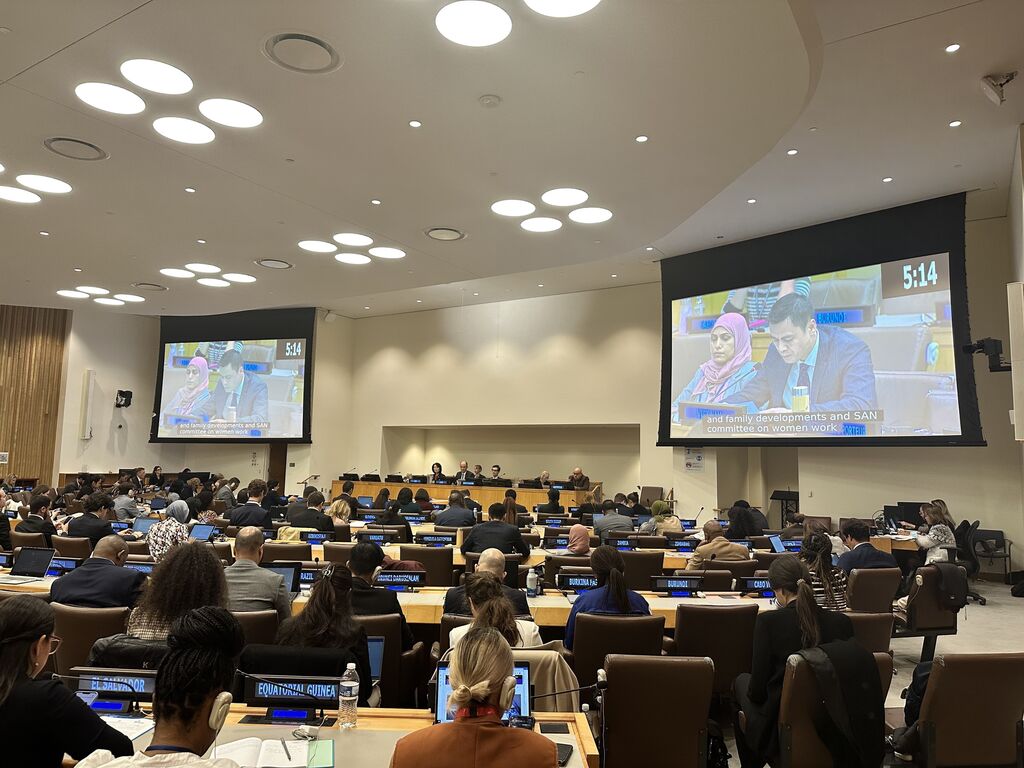 | Séance de discussion sur les questions de développement social de la Commission des affaires sociales, humanitaires et culturelles de la 78e session de l'Assemblée générale des Nations unies à New York. |