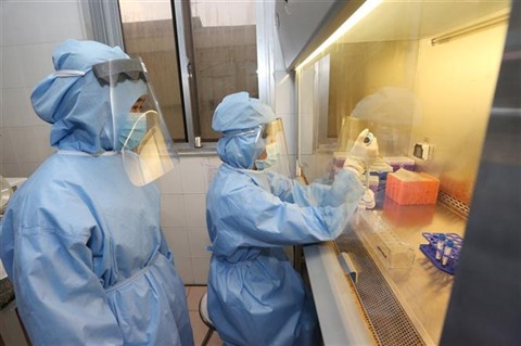 | Recherche du virus SARS-CoV-2 dans une laboratoire de l'Université de médecine militaire du Vietnam. |