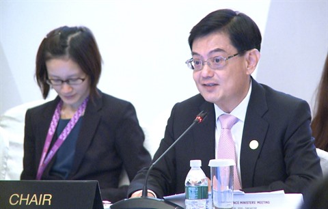 | Le ministre singapourien des Finances, Heng Swee Keat, préside la conférence. |