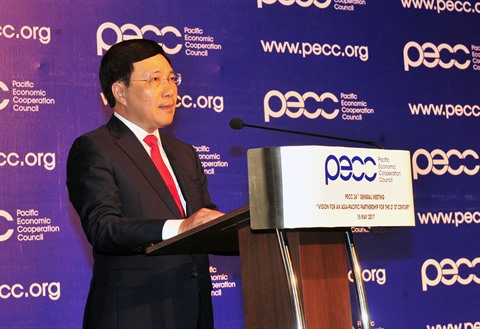 | Le vice-Premier ministre et ministre vietnamien des Affaires étrangères Pham Binh Minh lors de la cérémonie d’ouverture de la 24e Assemblée générale du PECC. |