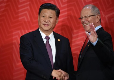 | Le président chinois Xi Jinping (gauche) et son homologue préruvien Pedro Pablo Kuczynski, le 20 novembre |