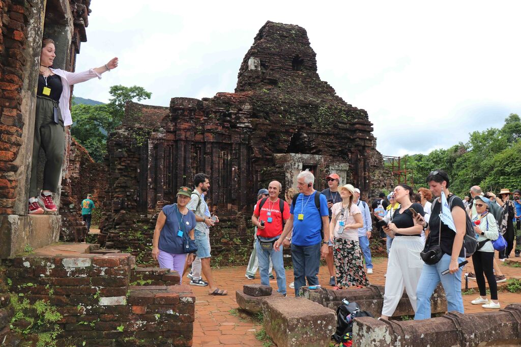 | Touristes visitant le sanctuaire de My Son (province de Quang Nam, au Centre), patrimoine mondial de l'UNESCO. |
