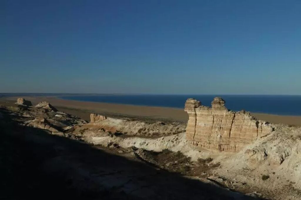 | Le rivage de la mer d'Aral dans le Nord-Ouest de l'Ouzbékistan. |