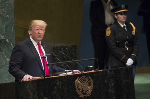 | Le président américain Donald Trump prend la parole lors de la 73e session de l'Assemblée générale de l'ONU tenue le 25 septembre. |