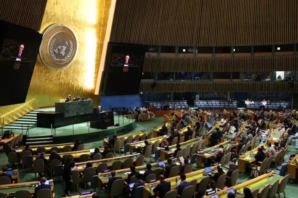 La "déclaration de New York" plaide aussi pour la "fin de la guerre à Gaza" et un "règlement juste, pacifique et durable du conflit israélo-palestinien, reposant sur une mise en oeuvre véritable de la solution à deux États". Une position habituelle de l'Assemblée.