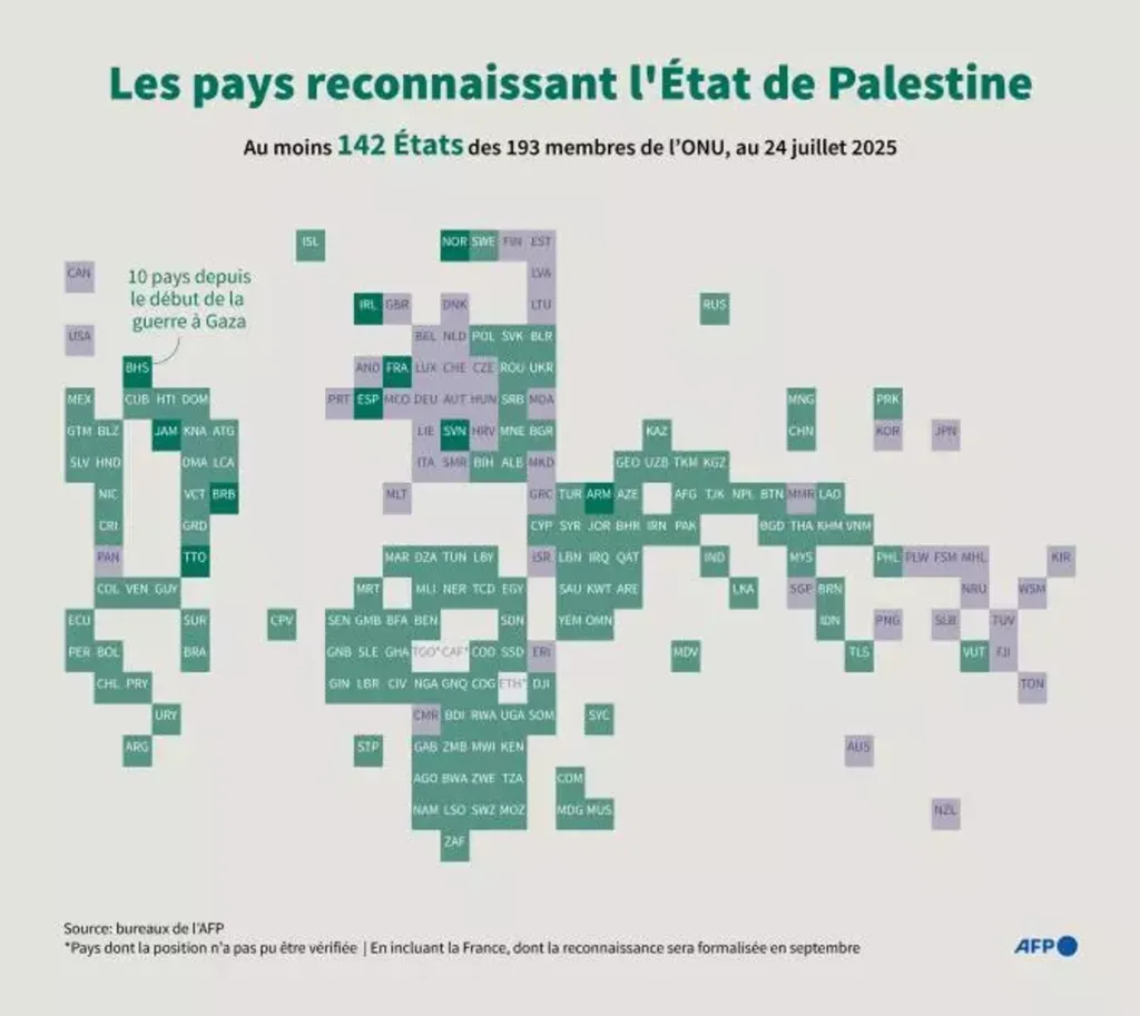 À la suite de Paris, plusieurs pays ont annoncé leur intention de le faire lors de l'Assemblée générale de l'ONU fin septembre, un processus vu comme un moyen de pression supplémentaire sur Israël pour mettre fin à la guerre à Gaza, déclenchée après les attaques d'octobre 2023.