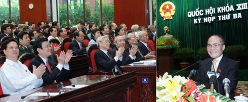 | Le président de l’Assemblée nationale Nguyên Sinh Hùng (droite) lors de la clôture de la 3e session. |