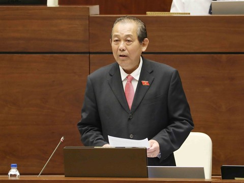 | Le vice-Premier ministre permanent Truong Hoà Binh a répondu directement à de nombreuses questions de députés, le 15 juin à Hanoï. |