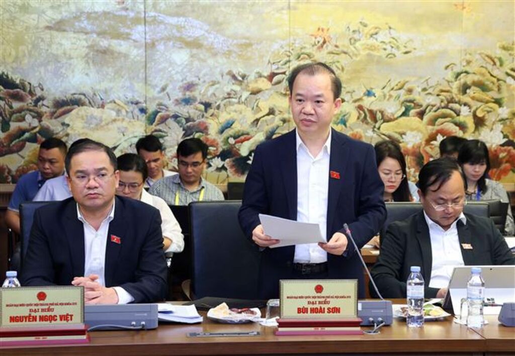| Le député de Hanoï, Bùi Hoài Son, s’exprime lors d’une séance de travail en groupe de l’Assemblée nationale, le 20 avril. |