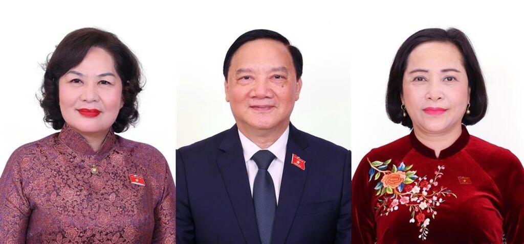 | De gauche à droite : les vice-présidents de l’Assemblée nationale, Nguyên Thi Hông, Nguyên Khac Dinh, et Nguyên Thi Thanh. |