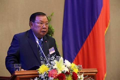 | Bounnhang Vorachit prend la parole, le 20 avril à l’Assemblée nationale lao. |