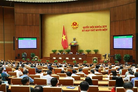 | Une séance plénière de la 11e session de la XIVe législature de l’Assemblée nationale, le 2 avril à Hanoï. |