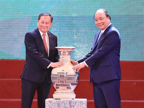 | Le Premier ministre Nguyên Xuân Phuc (droite) offre un cadeau à l'Association des architectes du Vietnam, le 21 avril à Hanoï. |