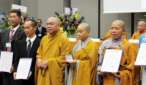 | Cérémonie de remise de la décision de création de l'Association des bouddhistes du Vietnam (ABV), le 5 octobre à Tokyo. |