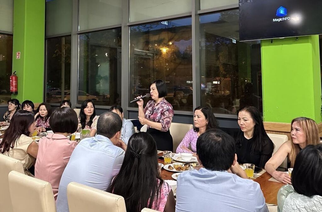 | L'ambassadrice du Vietnam, Nguyên Thi Bich Thao, s'exprimant lors de la rencontre de membres de l'Association des femmes vietnamiennes en Hongrie. |