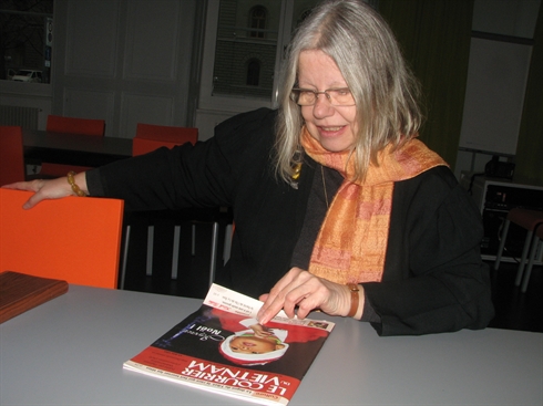 | La présidente de l’ASV, Anjuska Weil, lit Le Courrier du Vietnam. |