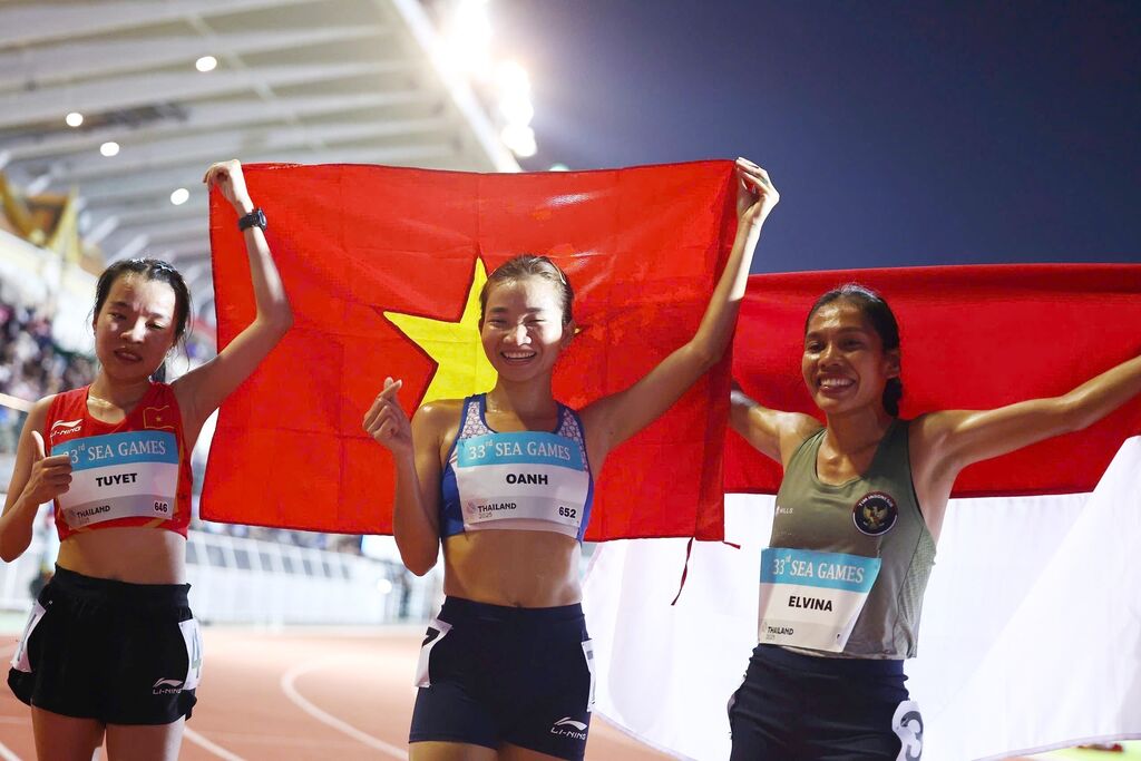 Sur 5.000m féminin, Nguyên Thi Oanh a conservé son titre, portant son total de médailles d'or aux Jeux d'Asie du Sud-Est à 13 et égalant le record détenu par Nguyên Thi Huyên.