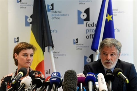 | Wenke Roggen (gauche) et Eric Van der Sypt, du parquet fédéral belge, donnent une conférence de presse à Bruxelles, le 30 mai. |