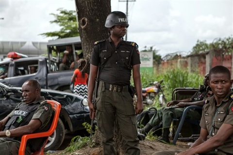 | Des policiers nigerians à Port Harcout (Nigeria), le 26 mars. |