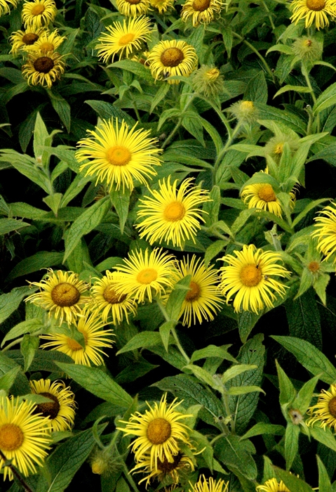 Les feuilles de la base sont très grandes, avec un long pétiole et disposées en rosette. Les feuilles de la tige n’ont pas de pétiole. La plante donne des fleurs en grands capitules à ligules étroites. Originaire d’Europe du Sud-Est et d’Asie occidentale, l’aunée officinale pousse dans les régions tempérées. On la cultive par semis (au printemps) ou par division des racines. Elle préfère les sols humides.