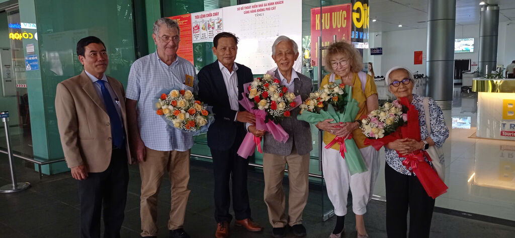 | Lauréat du prix Nobel de physique 2012, Serge Haroche (2e gauche) et son épouse (2e droite) au quartier de Quy Nhon Nam, le 6 octobre. |