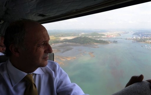 | Le ministre français des Affaires étrangères Laurent Fabius survole le canal de Panama, le 23 février. Photo : AFP/VNA/CVN |