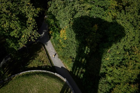 | Une femme marchant dans la forêt de Sauvabelin, polluée par la dioxine, le 15 octobre 2021. |
