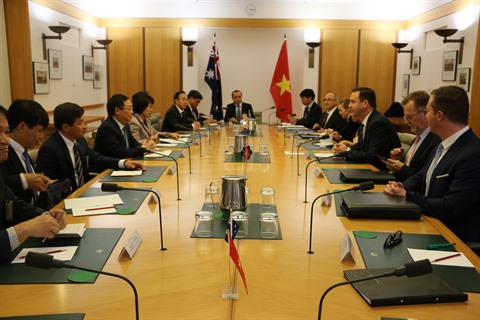 Les vice-Premiers ministres Vuong Dinh Huê et Banarby Joyce, qui est également Premier ministre p.i, et d'autres responsables australiens ont affirmé leur détermination à renforcer la coopération économique, commerciale et d’investissement, à augmenter le commerce bilatéral (actuellement 5 milliards de dollars par an), tout en augmentant les investissements dans les domaines potentiels des deux pays dont l'agriculture, l'éducation, l'infrastructure.