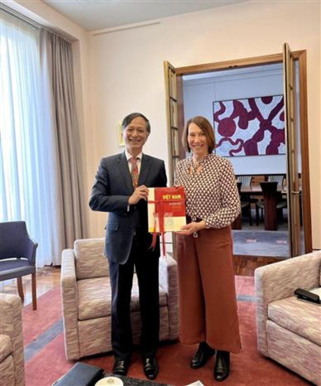L’ambassadeur Nguyên Tât Thành et la présidente du Sénat, Sue Lines, ont convenu de travailler ensemble pour promouvoir la coopération entre l’Assemblée nationale du Vietnam et le Parlement australien, en vue du 50e anniversaire des relations diplomatiques Vietnam - Australie (1973-2023).