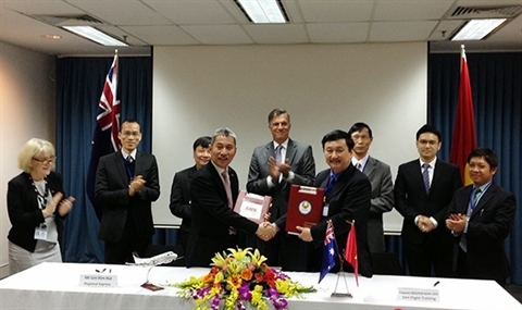 | Cérémonie de signature d'un contrat commercial entre l’Institut des pilotes aériens d’Australie et le Centre de formation de pilotes vietnamiens, le 16 décembre à Hanoi |