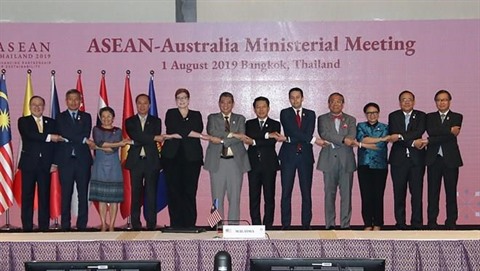 | Des délégués lors de la réunion ministérielle ASEAN - Australie tenue à Bangkok, en Thaïlande, le 1er août. |