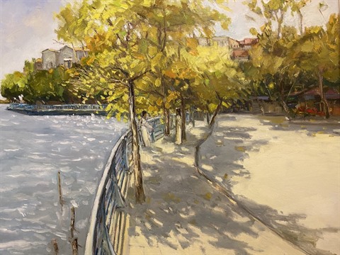 Les peintures donnent un aperçu sur Hanoï en automne - la plus belle saison de l'année pour la capitale vietnamienne - avec un doux soleil, des feuilles jaunes et de petites mais charmantes ruelles.