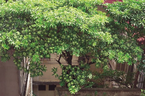 | Des arbres à fleurs “de lait” (Alstonia scholaris) dans une rue de Hanoï. Photo:Hoàng Phuong/CVN |