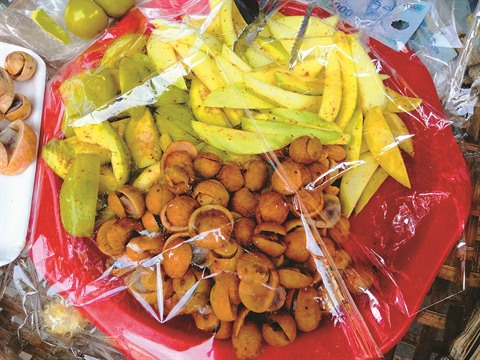 | Des morceaux de mangues et de fruits du pancovier font saliver. Photo: Diêu Thuy/CVN |