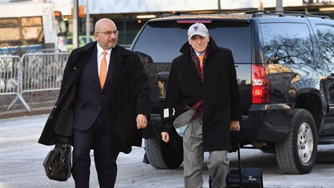| L'un des avocats d'El Chapo, Eduardo Balarezo (gauche), arrive, le 30 janvier, au tribunal fédéral de Brooklyn, aux États-Unis. |