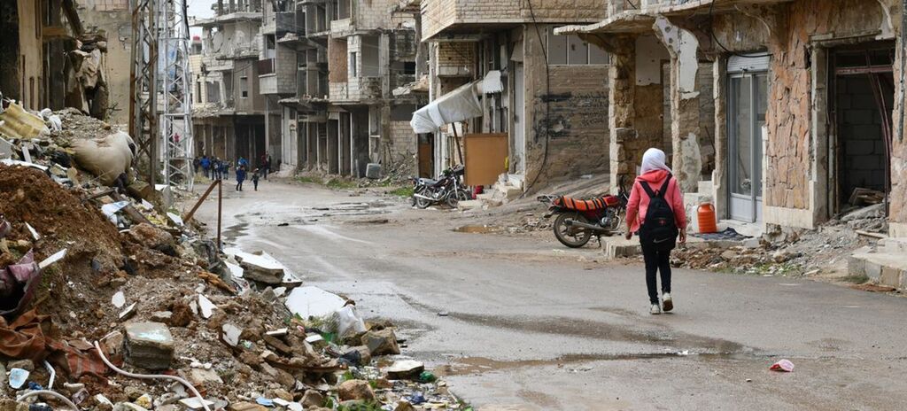 | Des enfants marchent dans un quartier de Zabadani, dans la région rurale de Damas, en Syrie. |