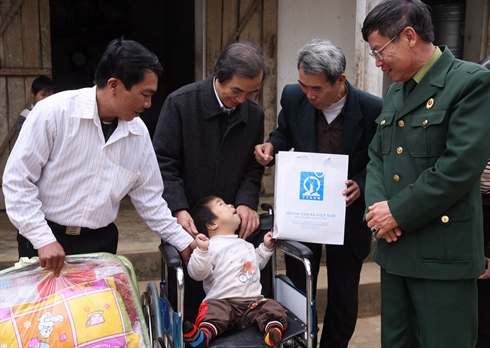 | Les représentants de l'AVI offre des cadeaux le 30 janvier à des victimes de l'agent orange de Ninh Binh. Photo : Nguyên Thuy/VNA/CVN |