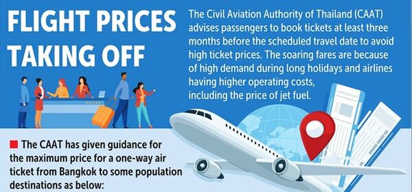 Cependant, il a déclaré qu'une flambée des tarifs aériens ne devrait pas être une préoccupation majeure tant que l'Autorité de l'aviation civile de Thaïlande (CAAT) est en mesure de réglementer les tarifs à travers le plafond qu'elle a fixé.