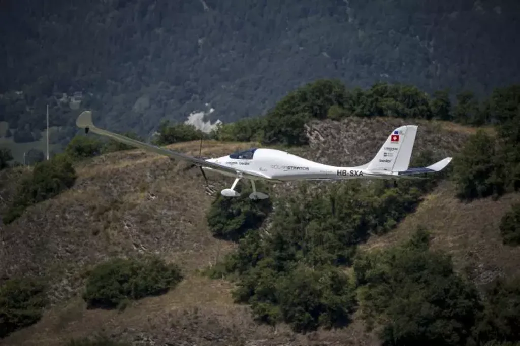 Le pilote a su naviguer les courants d'air chaud dans le canton du Valais dans le Sud-Ouest de la Suisse mardi 12 août pour permettre à son petit avion à l'envergure impressionnante de monter aussi haut et de "croiser un avion de ligne".