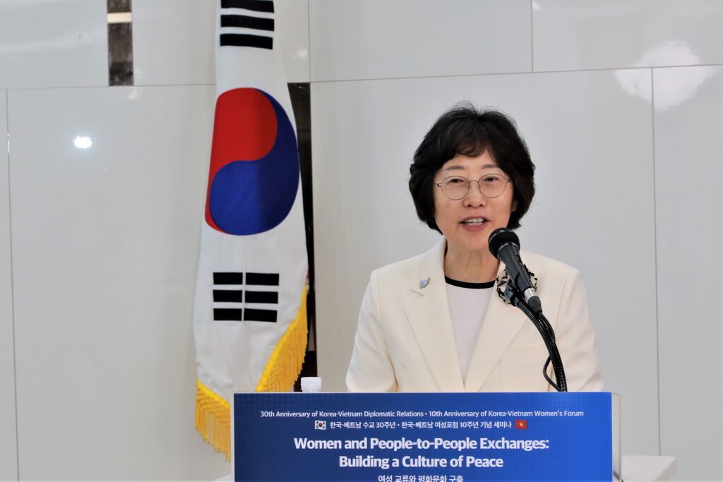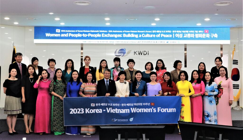| Des participants au 10e Forum des femmes de la R. de Corée et du Vietnam à Séoul. |