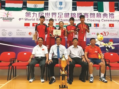 | L’équipe vietnamienne, championne du 9e Mondial de plumfoot à Hongkong en 2017. |