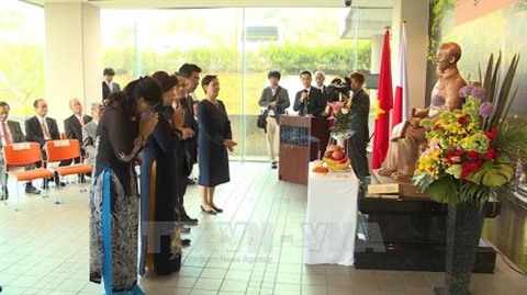 | Cérémonie en l'honneur du 128e anniversaire de la naissance du Président Hô Chi Minh dans la ville japonaise de Mimasaka. |