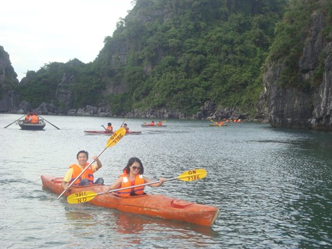 | Faire du kayak sur la baie de Ha Long, province de Quang Ninh (Nord). |
