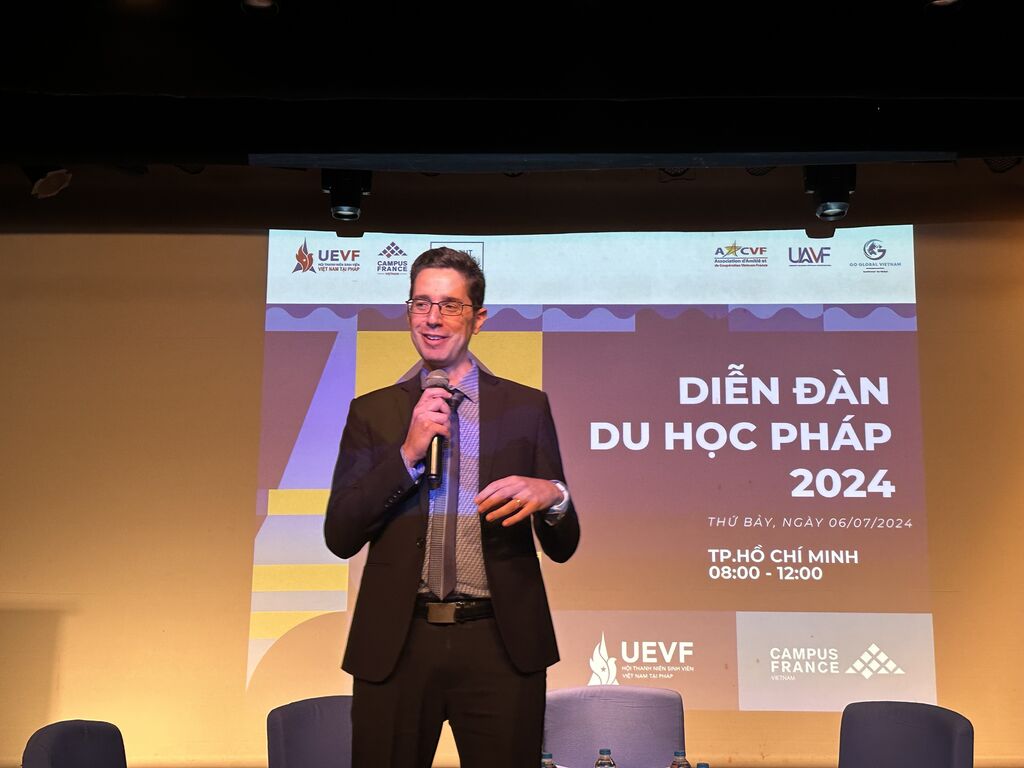 | Florent MÉNARD, directeur de Campus France Vietnam, parlant couramment vietnamien, partage son expérience des études outre-mer. |