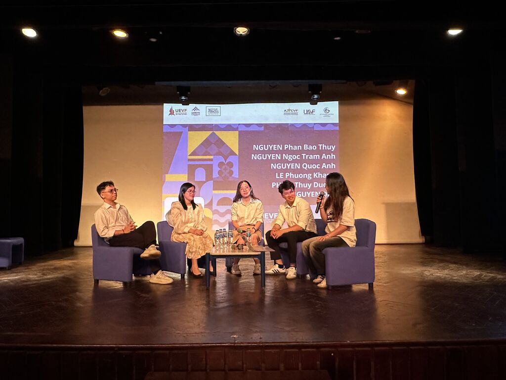 | D'anciens étudiants vietnamiens en France répondant à des questions posées par des étudiants et parents d'élèves. |