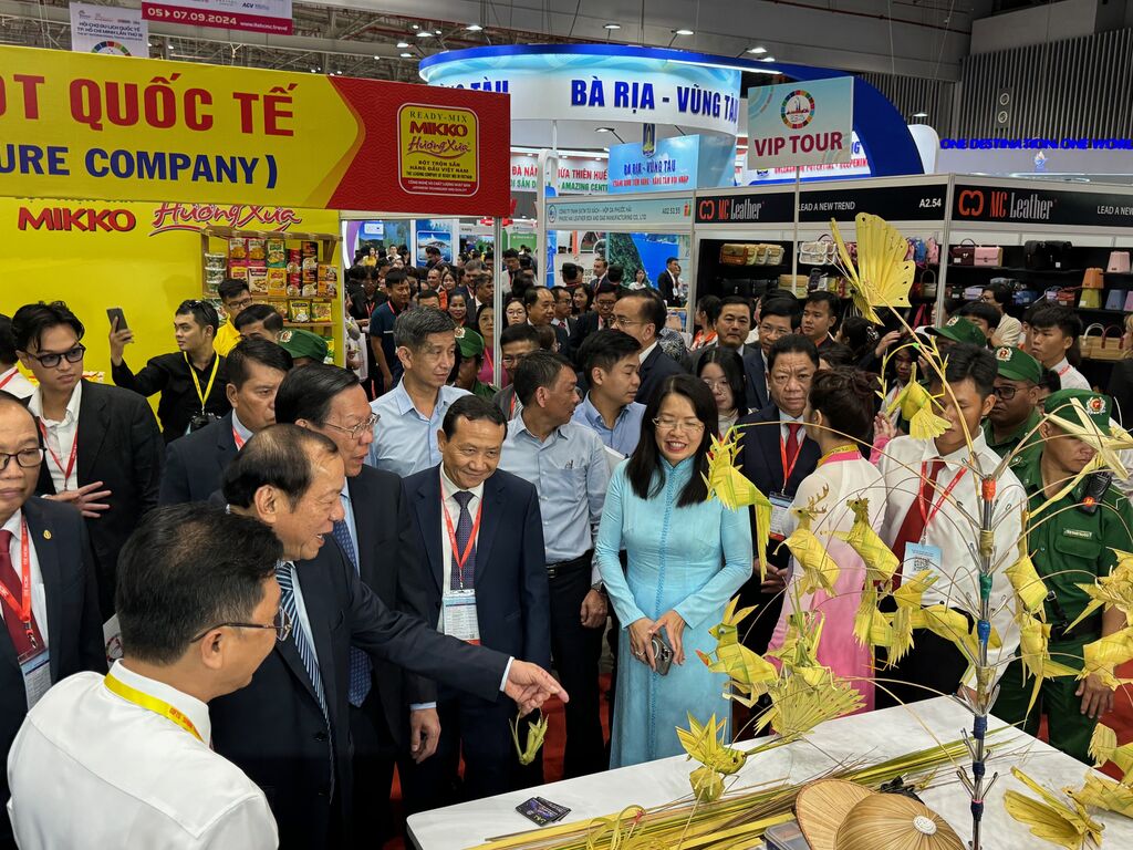 | Les dirigeants de Hô Chi Minh-Ville et de l'industrie du tourisme visitent un stand à l'ITE HCMC 2024. |
